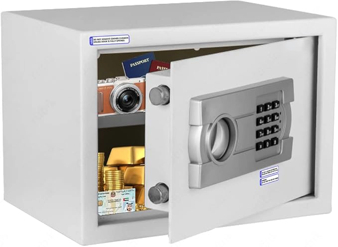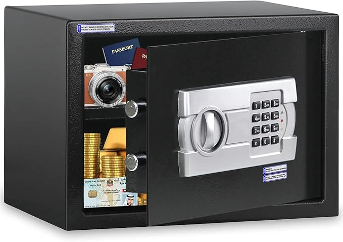 Multipurpose Use: Ideal for various uses, this safe accommodates cash, jewelry, watches, gold, passports, and more. A reliable solution for your security needs.