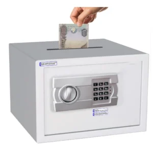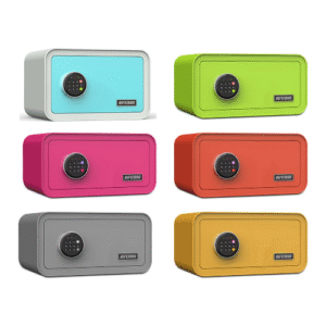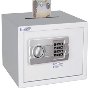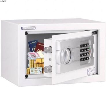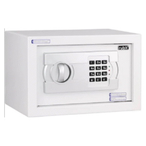 Solid steel, pry resistant door with concealed hinges and 2 steel live action locking bolts make this Rubik safe more secure. This safe is built with durable steel and tamper-resistant edges and fire resistant paint coating.