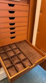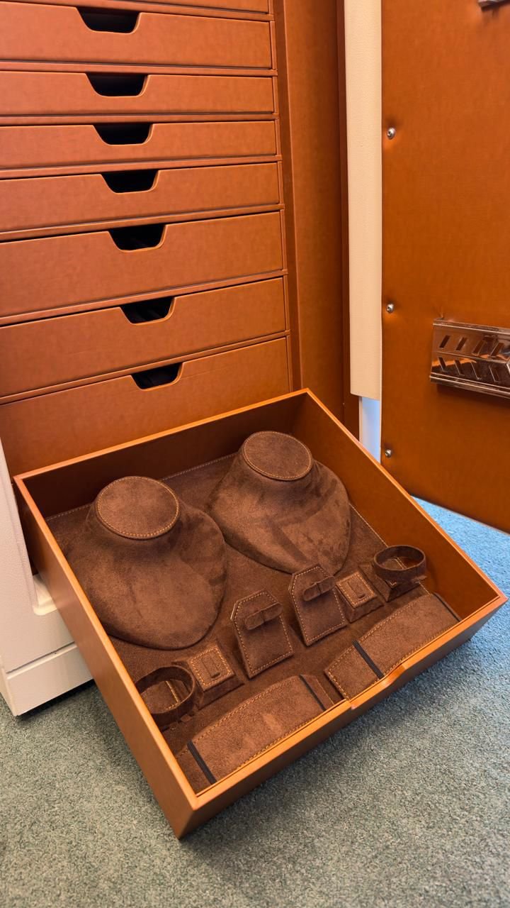 * Interior Layout: The entire interior is custom-designed with drawers and partitions tailored for your specific jewelry items, including: